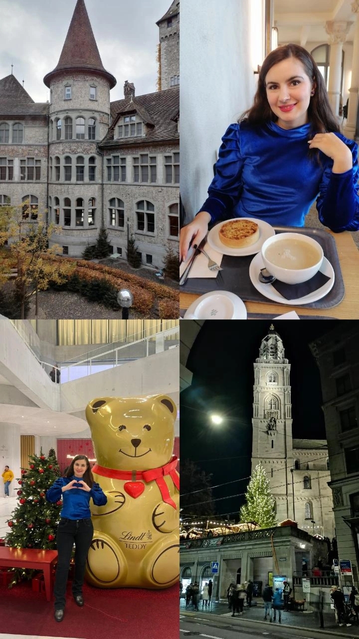 Am început cu Zurich, oraș în care am vizitat muzeul național, muzeul ciocolatei Lindt, târgurile de Crăciun din Sechseläutenplatz, Münsterhof și gara (Bahnhofplatz) și am mâncat pentru prima dată quiche.