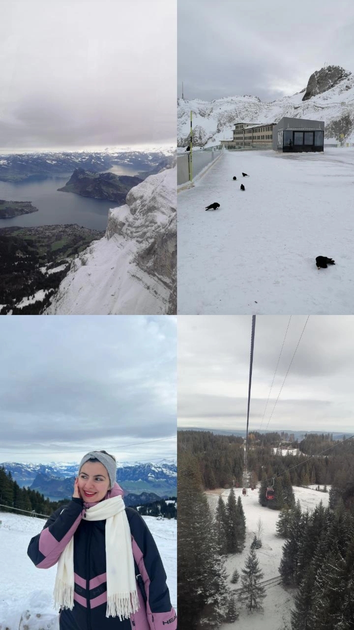 A doua zi am ales tot Elveția. Mi-am început ziua un croissant cu unt delicios și o urcare pe munte, în telecabină. Sus era zăpadă multă așa că am fost foarte fericită.