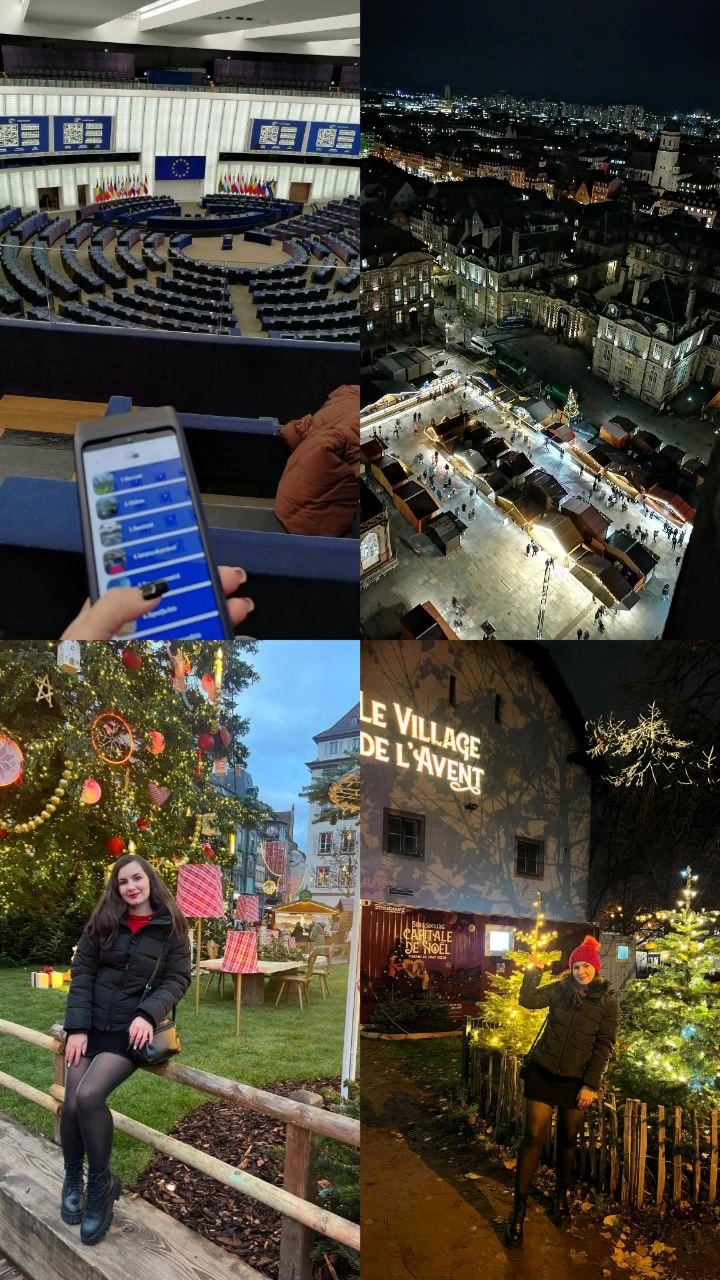 Am rămas în Franța în a 4-a zi pentru a face o vizită Parlamentului European (intrarea este gratuită). După aceea am mers la târgul de Crăciun din place Kléber unde am încercat bruschete cu brânză de capră, apoi am urcat pe acoperișul catedralei pentru a admira priveliștea nocturnă.