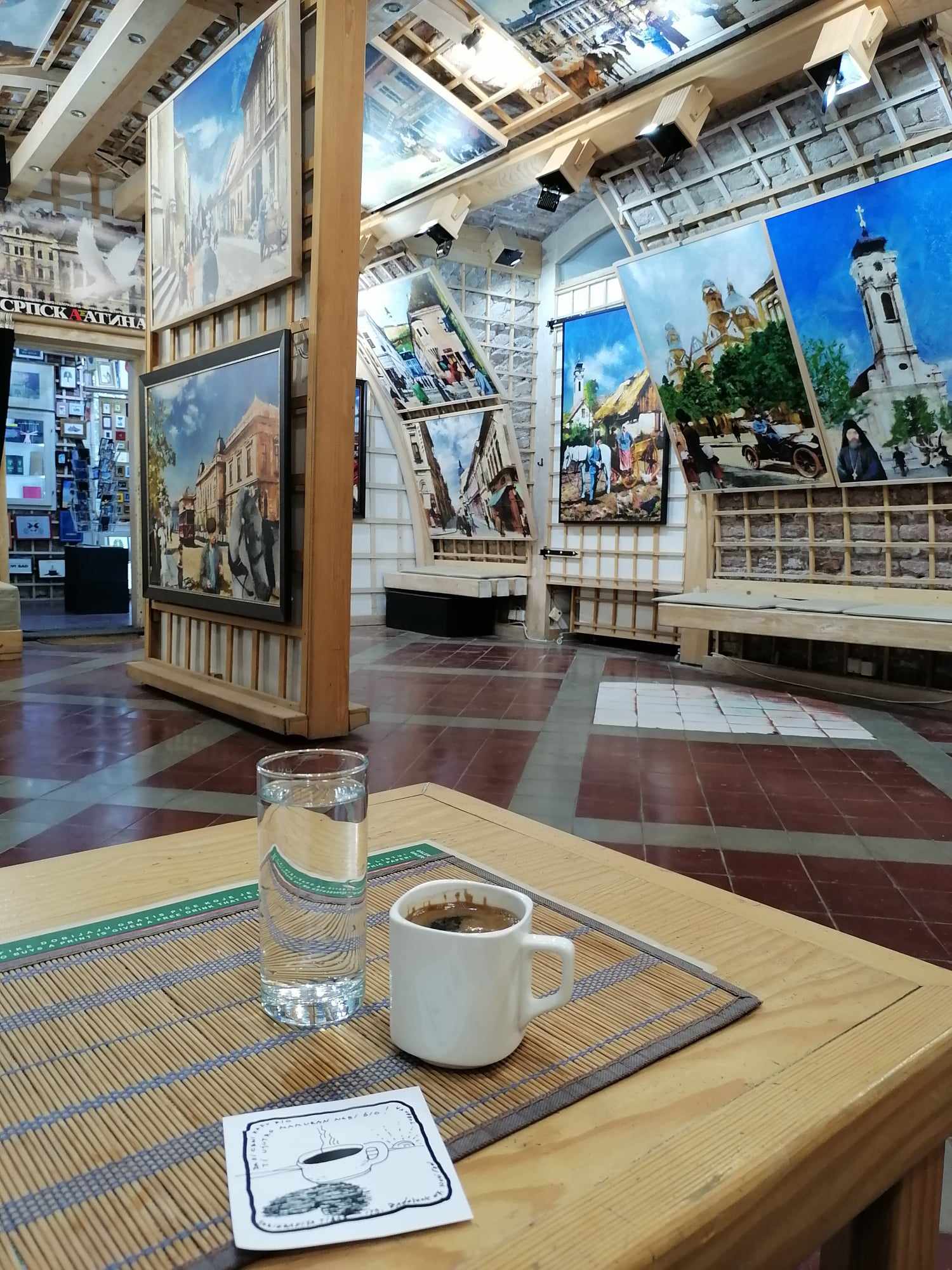 M-am plimbat prin parc, apoi m-am așezat la o cafea turcească într-un magazin-cafenea de ilustrații. Se află chiar la capătul scărilor, înainte de turn. Afară era plin de lume, dar eu mă săturasem de căldură și am preferat interiorul. Nu mai erau alte persoane în afară de angajați înăuntru, astfel încât am avut toată galeria doar pentru mine.