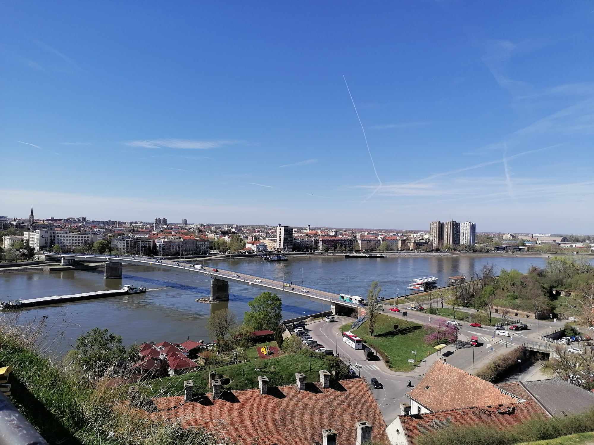 Eu am mers pe jos pe podul Varadin de unde am admirat Dunărea și fortăreața de la distanță.