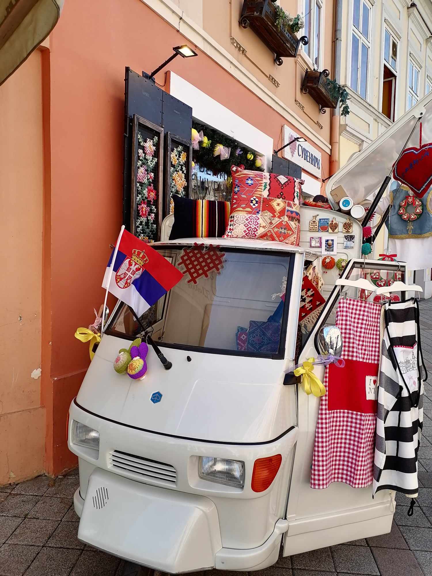 Pe strada Dunavska am găsit magazinul Suveniri care avea, pe lângă magneți, miere, dulciuri, haine tradiționale, multe alte obiecte sârbe autentice. Mi-a atras atenția datorită mașinii simpatice de la intrare.
