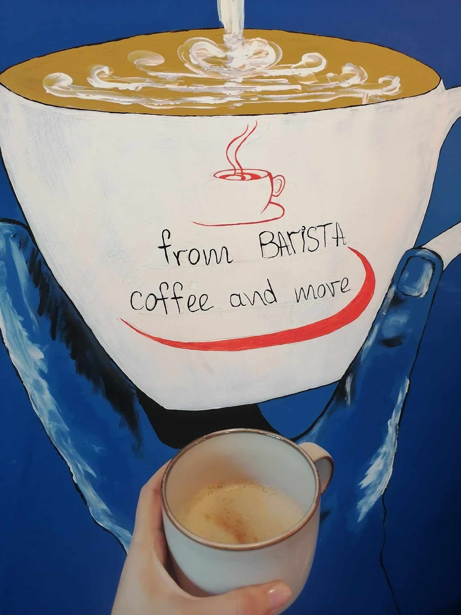 După sau înainte de plimbare, merge o cafeluță. Mi-a plăcut această cafenea pentru că aveau o cafea foarte bună și opțiuni vegane, eu ținând post. Am comandat un latte cu lapte de ovăz, fără zahăr, care a fost 6.1 leve (15.96 lei).