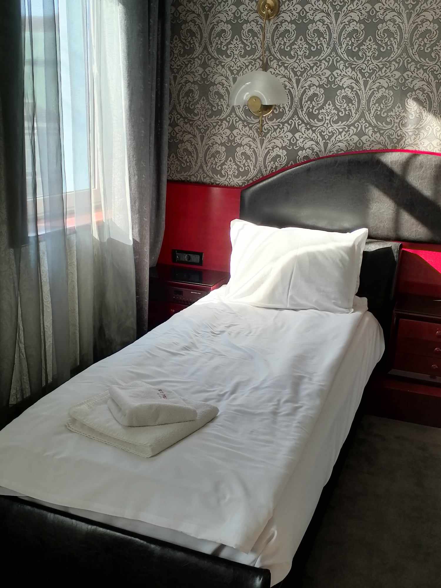 - amplasarea camerei cu fața către o stradă intens circulată și zgomotoasă. Am dormit foarte prost pentru că de la 5 dimineața până la 12 noaptea mergeau tramvaiele și se auzea de parcă aveam patul lângă șine. Strategia mea a fost să merg mult prin oraș, apoi să stau la spa până mai târziu ca să fiu epuizată și să adorm cumva. Dimineața e somnul mai dulce, iar zgomotul de afară nu reușea să mă trezească înainte de 6:30. Însă dacă vrei să mai lenevești în pat până pe la 8-9 sau să dormi la prânz, n-ai nici o șansă.