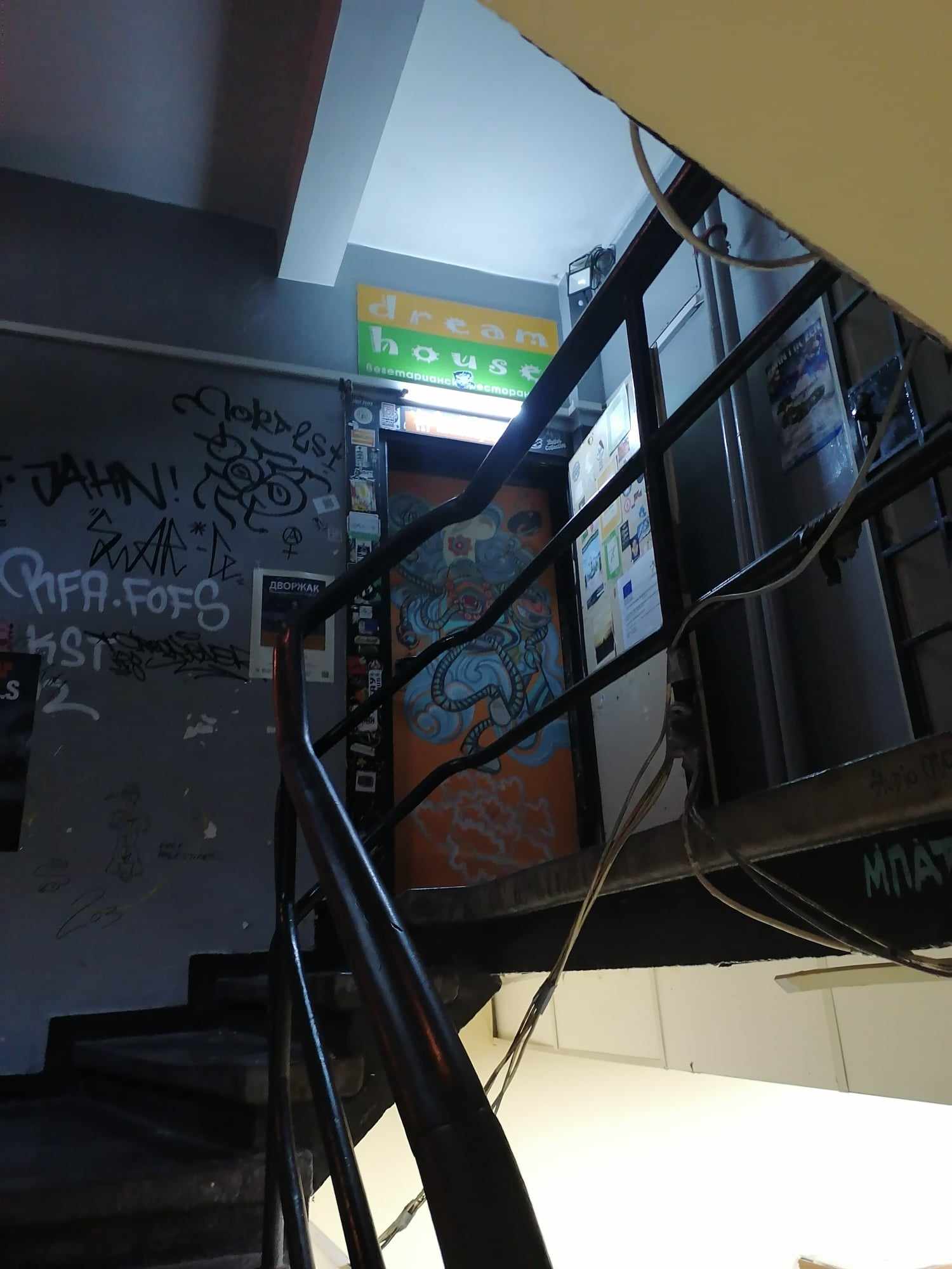Am văzut numele lui, dar nu găseam intrarea pentru că e pe un gang. Ușa din față era închisă, dar cea din stânga era deschisă și, urcând pe scări, l-am ochit.