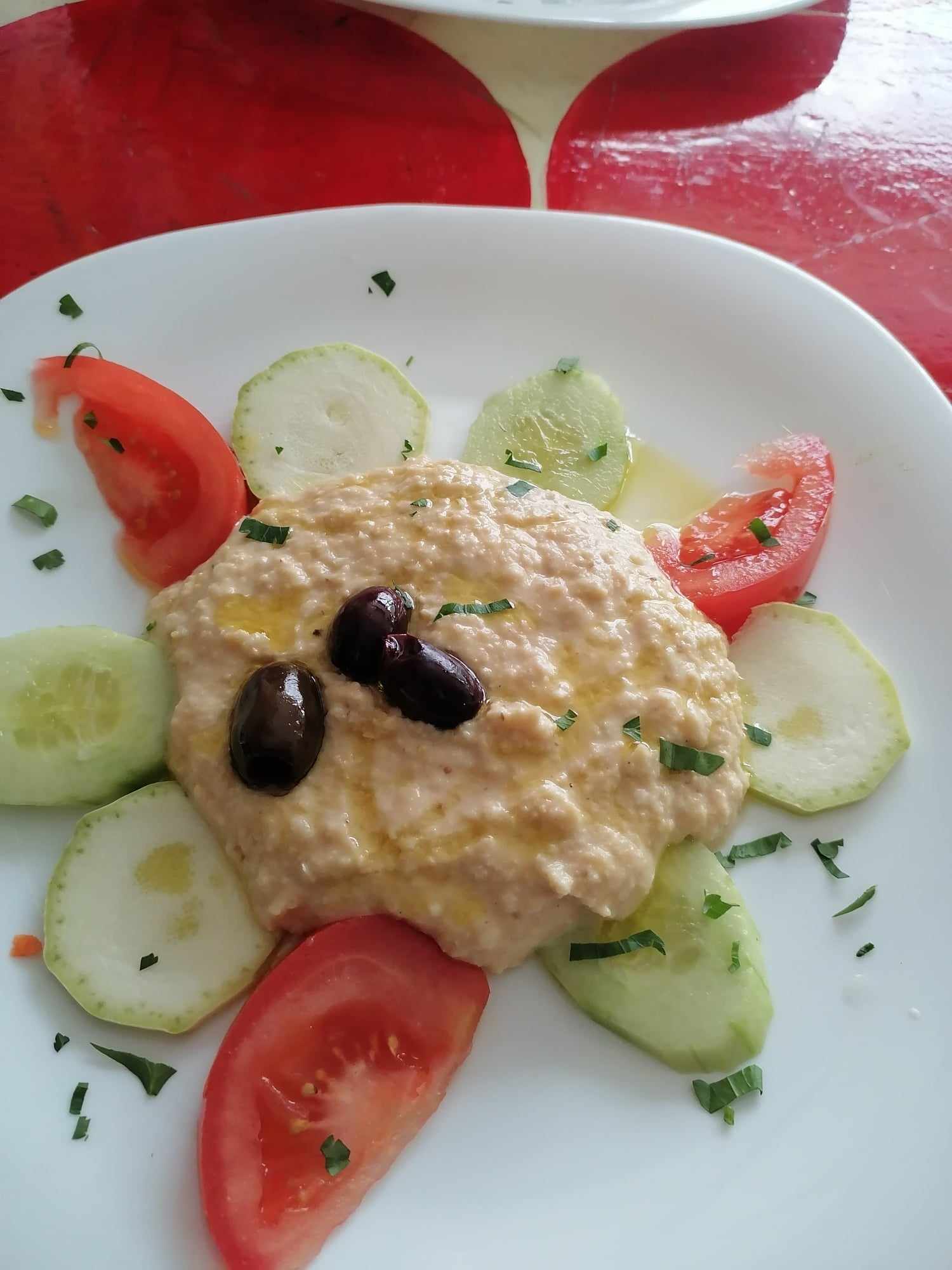 Am comandat humus cu legume proaspete (5.9 leve= 15 lei) și o salată multicoloră (6.5 leve= 16.5 lei). Salata mi-a plăcut cel mai mult.