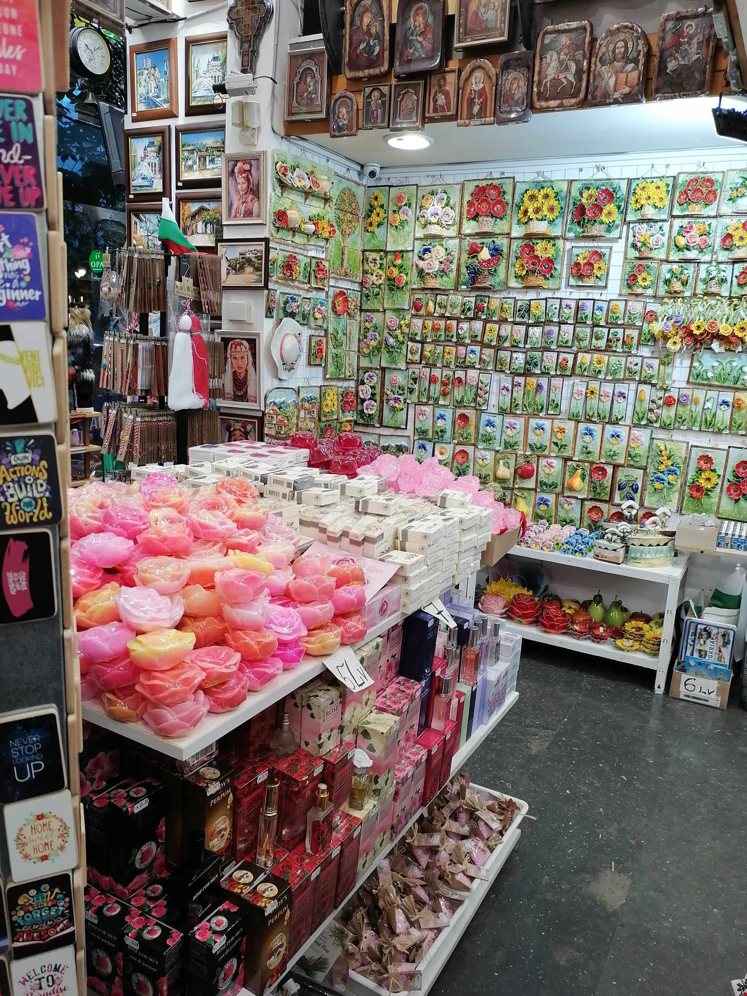 Pe strada Vitosha, mai puteți lua suveniruri. E plin de magazine care vând produse din trandafir. Se pare că trandafirul e ceva specific Bulgariei.