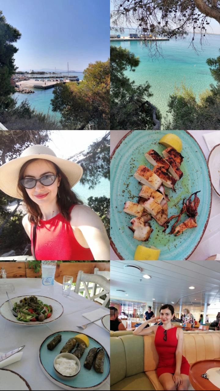 La doar 1 oră și 10 minute cu vaporul de Atena se află insula Egina. Vaporul se ia din portul Pireu la care ajungi ușor, cu metroul din Atena. Eu am făcut cam 50 de minute din zona în care am fost cazată până în port. După ce ieși din metrou, traversează stradă sau urmează pur și simplu mulțimea de oameni.