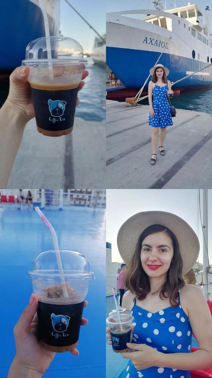 Înainte să te urci în vapor, oprește-te la Coffee Lab (e chiar lângă gura de metrou din Pireu) pentru un cappuccino Freddo. În caz că-l încerci pentru prima dată (ca mine), să ști că e rece. Eu am fost surprinsă pentru că pentru mine cappuccino însemna o băutură caldă. Dintre toate cafenelele la care am mers, cafeaua lor mi-a plăcut cel mai mult.