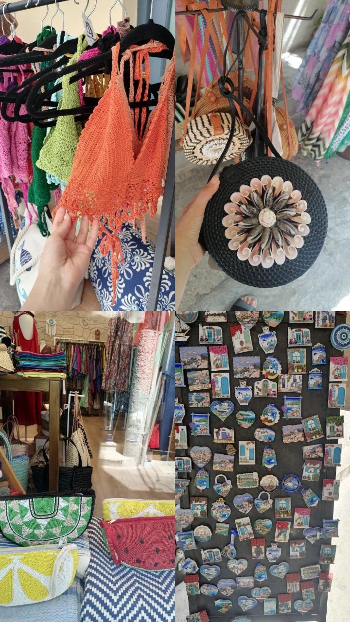 Sunt multe magazine cu produse deosebite pe insula ca această geantă cu scoici de exemplu. Dacă vrei ceva mai deosebit care să-ți amintească de concediul în Grecia, ai de unde alege.