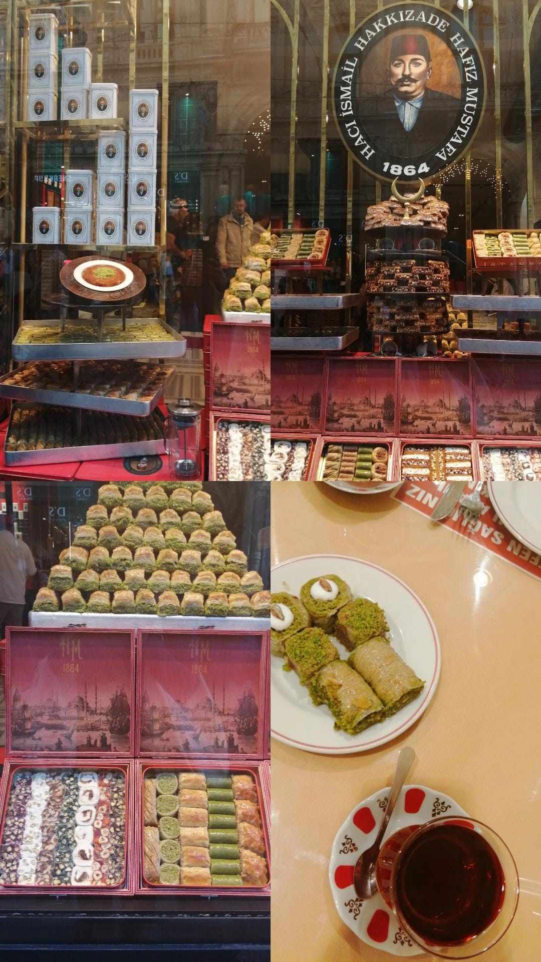 - Hafiz Mustafa 1864 (are cele mai delicioase baclavale cu fistic, iar rahatul turcesc (lokum) este ceva de vis). La ei am mâncat prima dată cataif și mi-a plăcut. Mai un niște bomboane glazurate delicioase. Au mai multe cofetării în diferite locuri din Istambul, iar partea bună este că livrează și în străinătate.