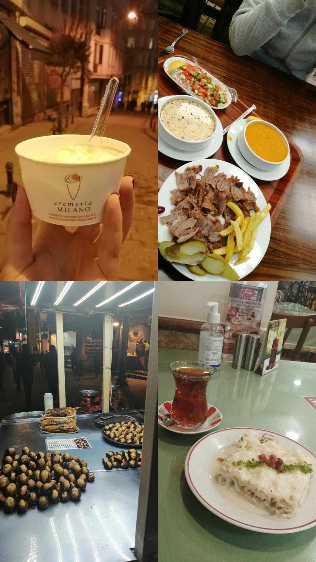 Tot pe strada Istiklal vei mai găsi castane coapte și porumb pe grătar în caz că-ți plac. Încearcă, de asemenea ciorbele și kebabul.